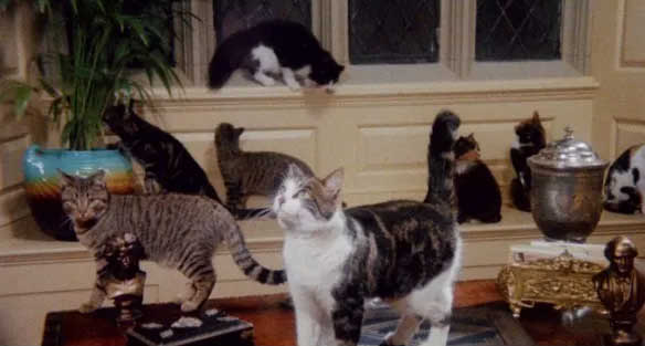 as he nervously watches cats with fear and suspicion. His parts between the