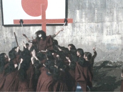 the other prisoners, whipped, crucified and drugged. So she does what she
