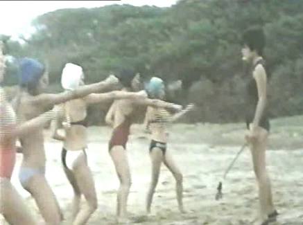 She collects a group of five women and trains them on the beach in martial